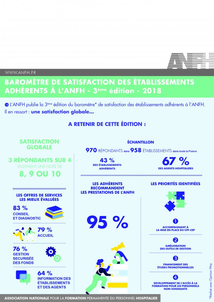 Dans le cadre de sa démarche d’amélioration continue, l’ANFH a mis en place, en 2013, un baromètre de satisfaction visant l’évaluation de la qualité de ses prestations par ses adhérents et l’identification des axes d’amélioration attendues.