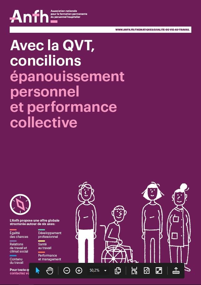 1. Via des informations générales sur la Qualité de Vie au Travail : https://www.anfh.fr/thematiques/qualite-de-vie-au-travail
