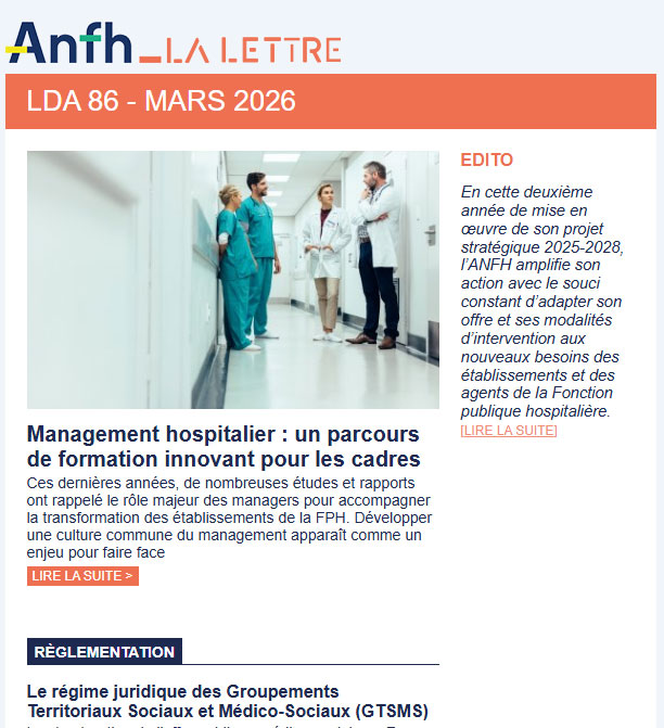 L'ANFH est l'OPCA de la Fonction publique hospitalière. Agréée par le Ministère de la Santé et des Sports, l'Association collecte et gère les fonds consacrés à la formation de plus de 950 000 agents