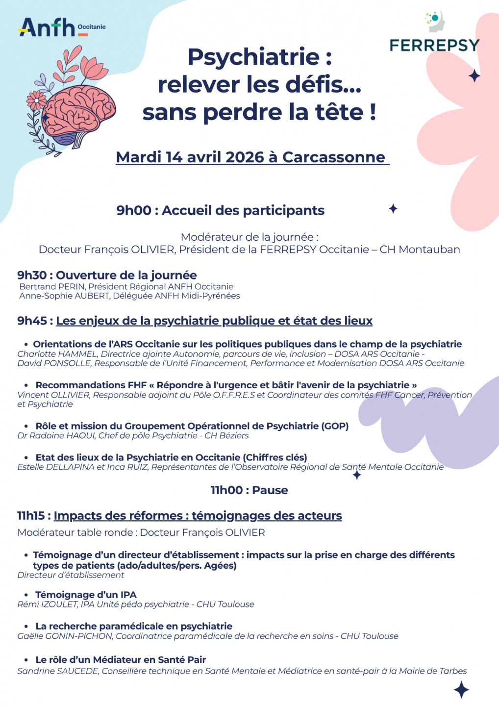 Le 14 avril à Carcassonne, l’ANFH Occitanie, en collaboration avec la FERREPSY, a organisé la journée :