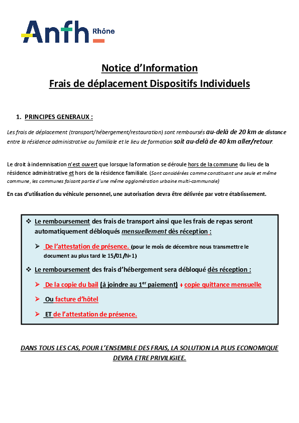 note sur les frais de déplacement